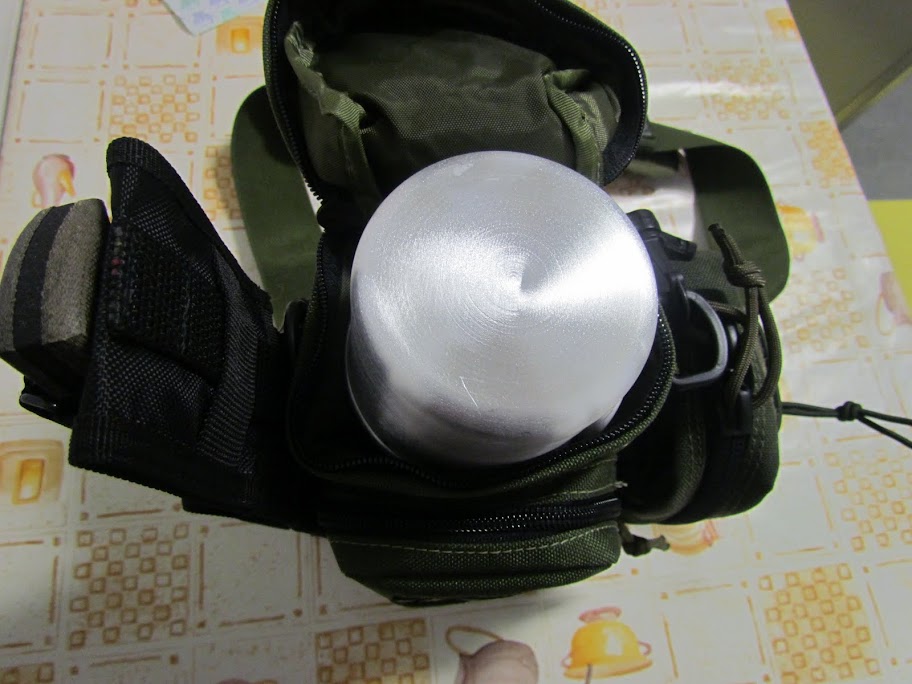 Ahora os muestro el contenido del bolsillo principal, dónde en este caso he alojado la botella Nalgene de 1 l. y un vaso de aluminio recientemente adquirido en el Decathlon.