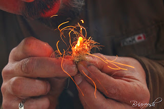 Señoras y señores, he aqui una impresionante imagen en la que se demuestra la maestria de aqullos que gustan por la obtención del fuego a la antigüa usanza:
